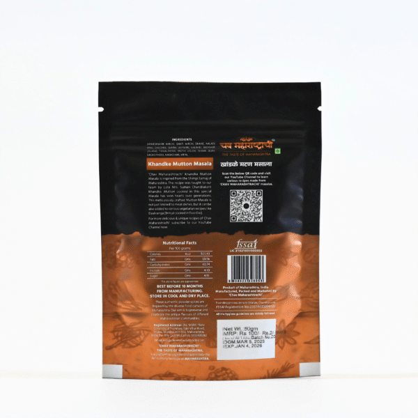 - Authentic Khandke Style Masala: Experience the traditional taste of Maharashtrian mutton dishes with our specially crafted Khandke Mutton Masala – aromatic, spicy, and made for rich meat curries.
