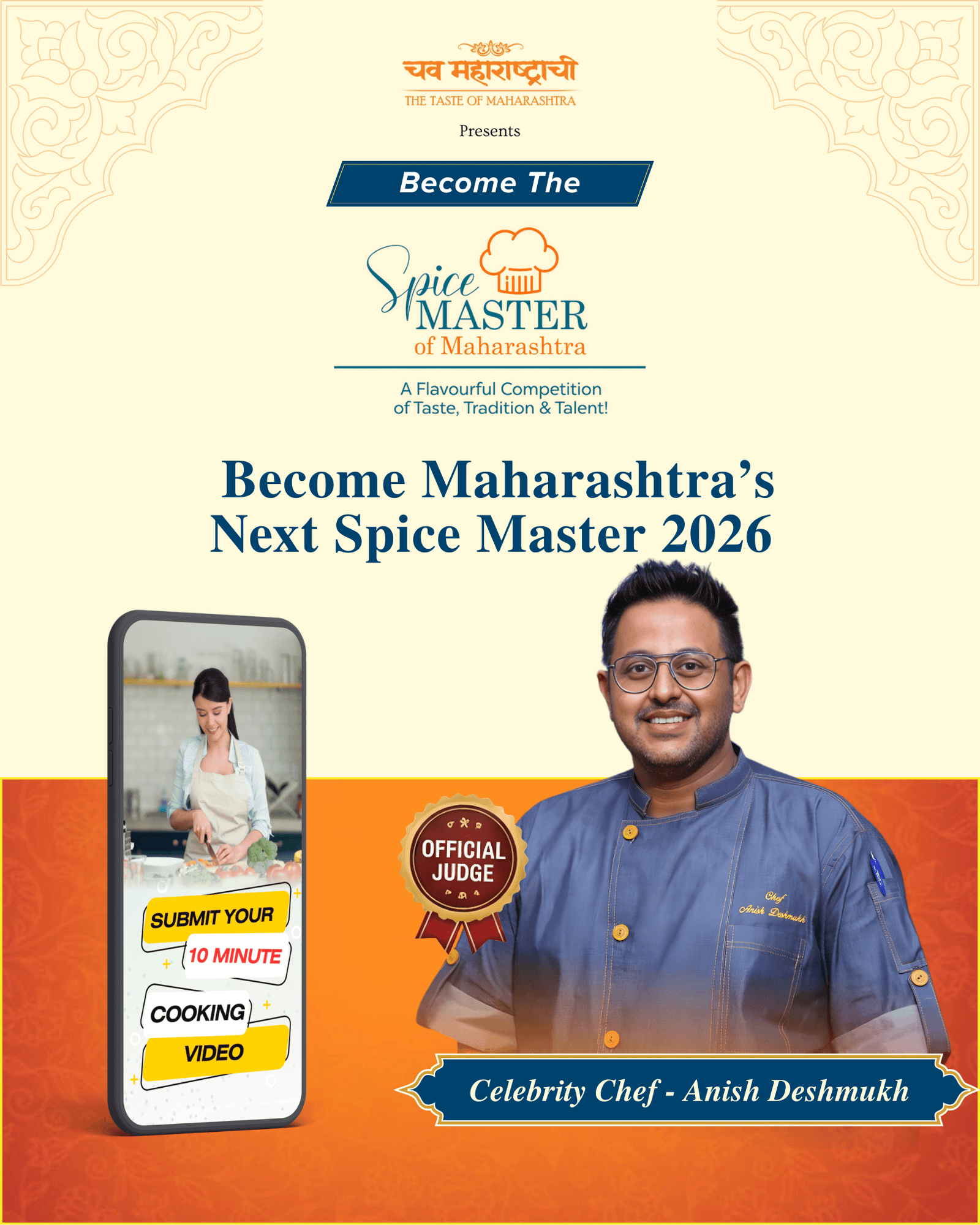 Chav Maharashtrachi Spice Master 2026 is a unique cooking competition designed to celebrate the authentic taste of Maharashtra through creativity and passion.